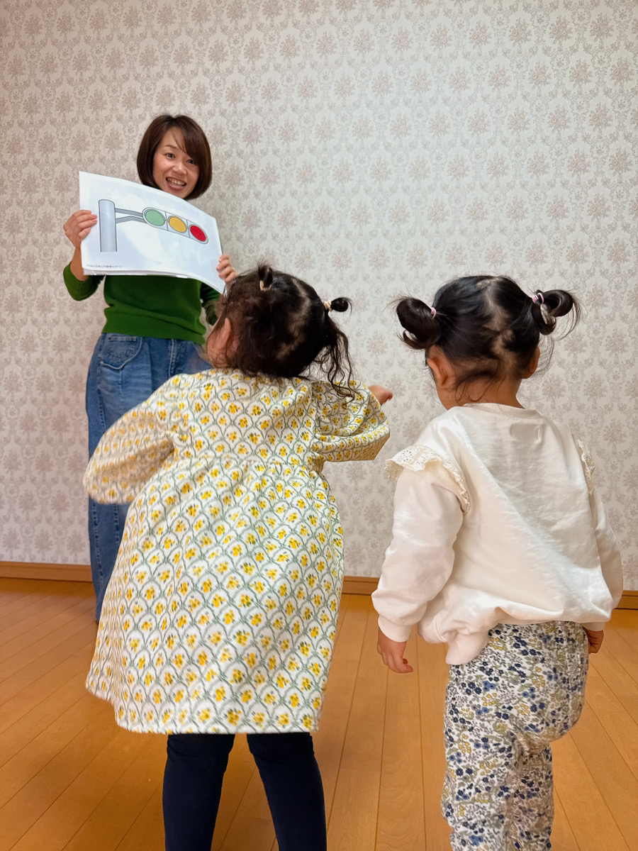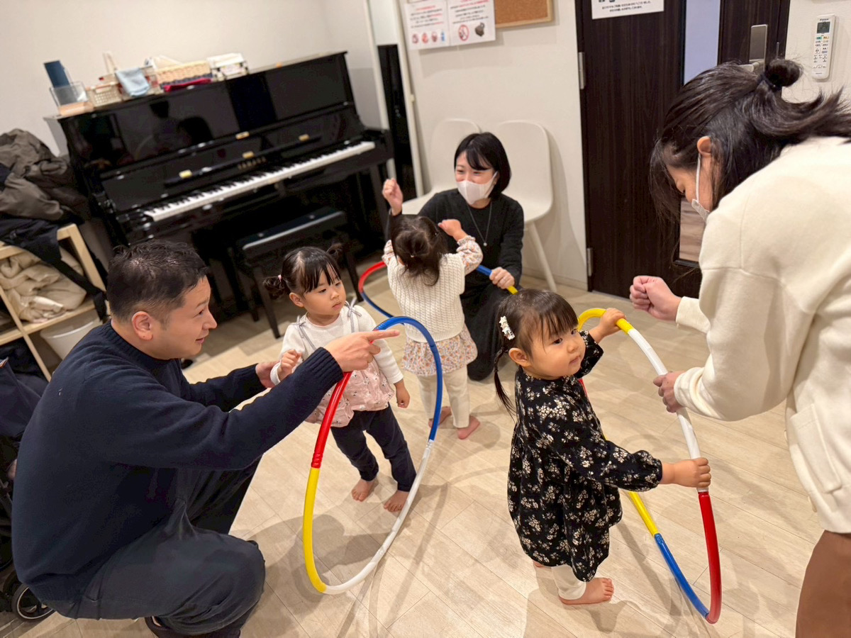 音やリズムを驚くほど吸収するこの時期の変化を大切に、その場の楽しさだけで終わらせない、リトミックを行っています。